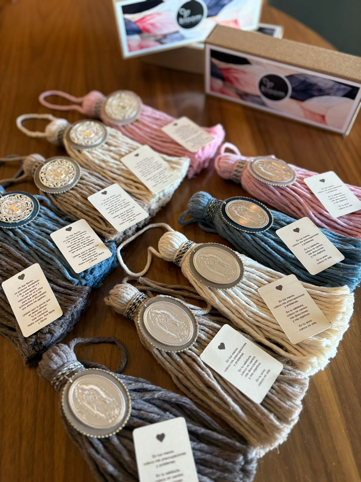 Colección de borlas de macrame con medalla de virgen de Guadalupe o...